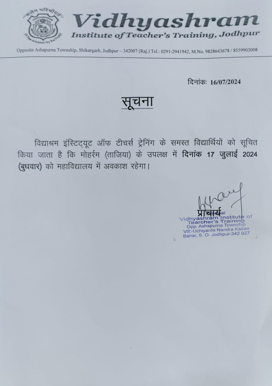 This is to inform all the students that July 17, 2024 shall be observed as Holiday on account of Moharram